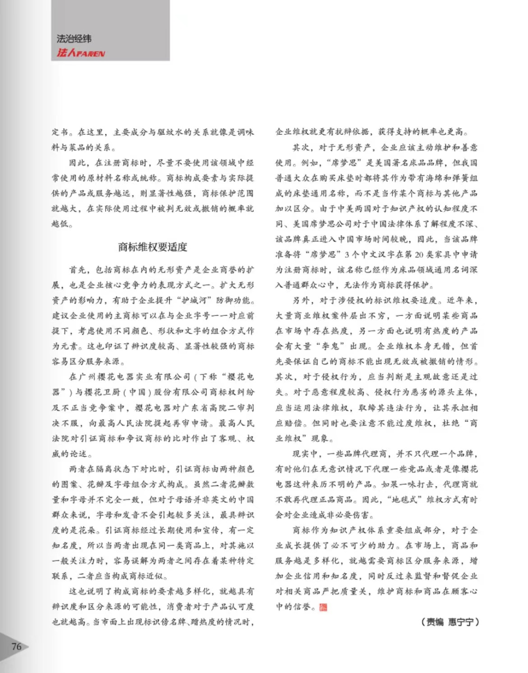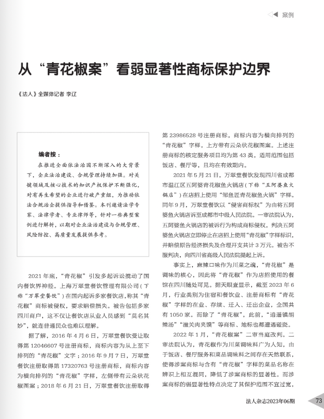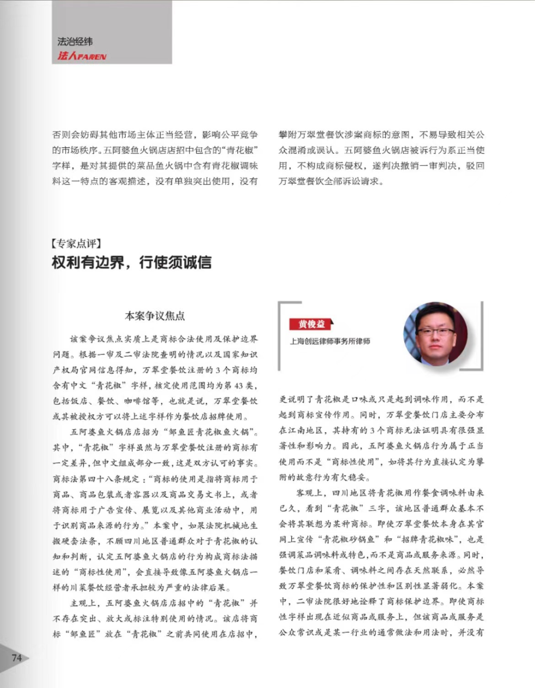黄石辉知简讯 | 辉知队黄俊益律师应“法治日报”旗下杂志邀请,就“青花椒”案发表专家点评